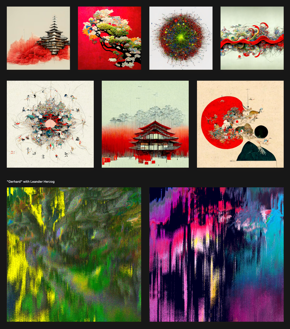 Richard Nadler is a German artist and exponent of the use of AI techniques such as Generative Adversarial Network (GAN) to create explosions of colour and intricate patterns, often inspired by Japanese art and culture. He has also collaborated with a number of artists to create code-based generative art, figurative art and even performance art.