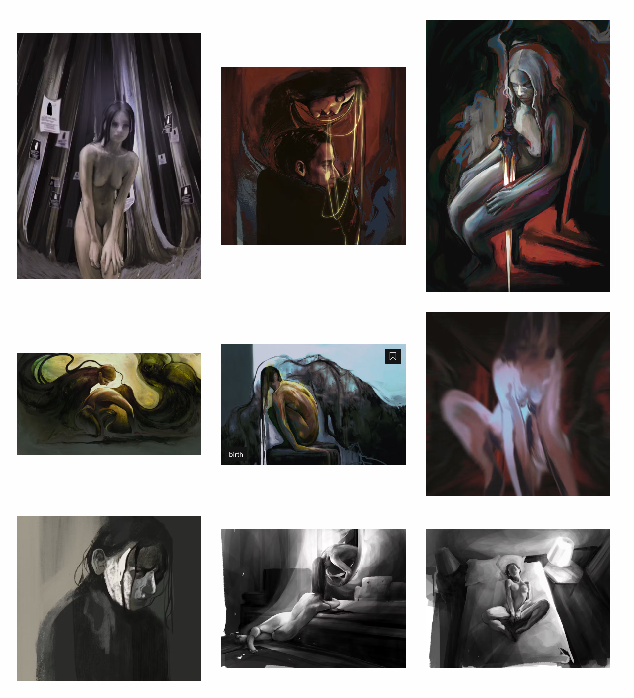 A Ukrainian artist who goes by the tag "Search_Signal" or her first name, Anya. Her work is an exploration of contrasts and shadows, meticulously crafted through the delicate yet dynamic strokes. From minimalist sketches that play on light and texture through to complex animations, Anya's work is rich in emotion and storytelling.