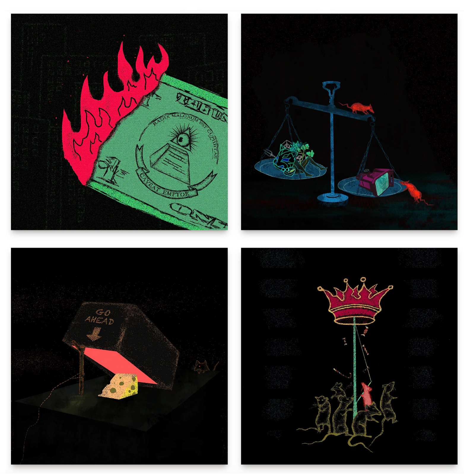 "Parasite" is a great example of Xer0x's instinct to go beyond the art itself. Originally this piece was given as a reward to 50 people who had purchased a different artwork that itself given away for free! Parasite soon became one of Xer0x's most desired pieces and is a symbol of Xer0x's "copy of a copy" mantra, being derived from XCopy's CC0 Grifter series.